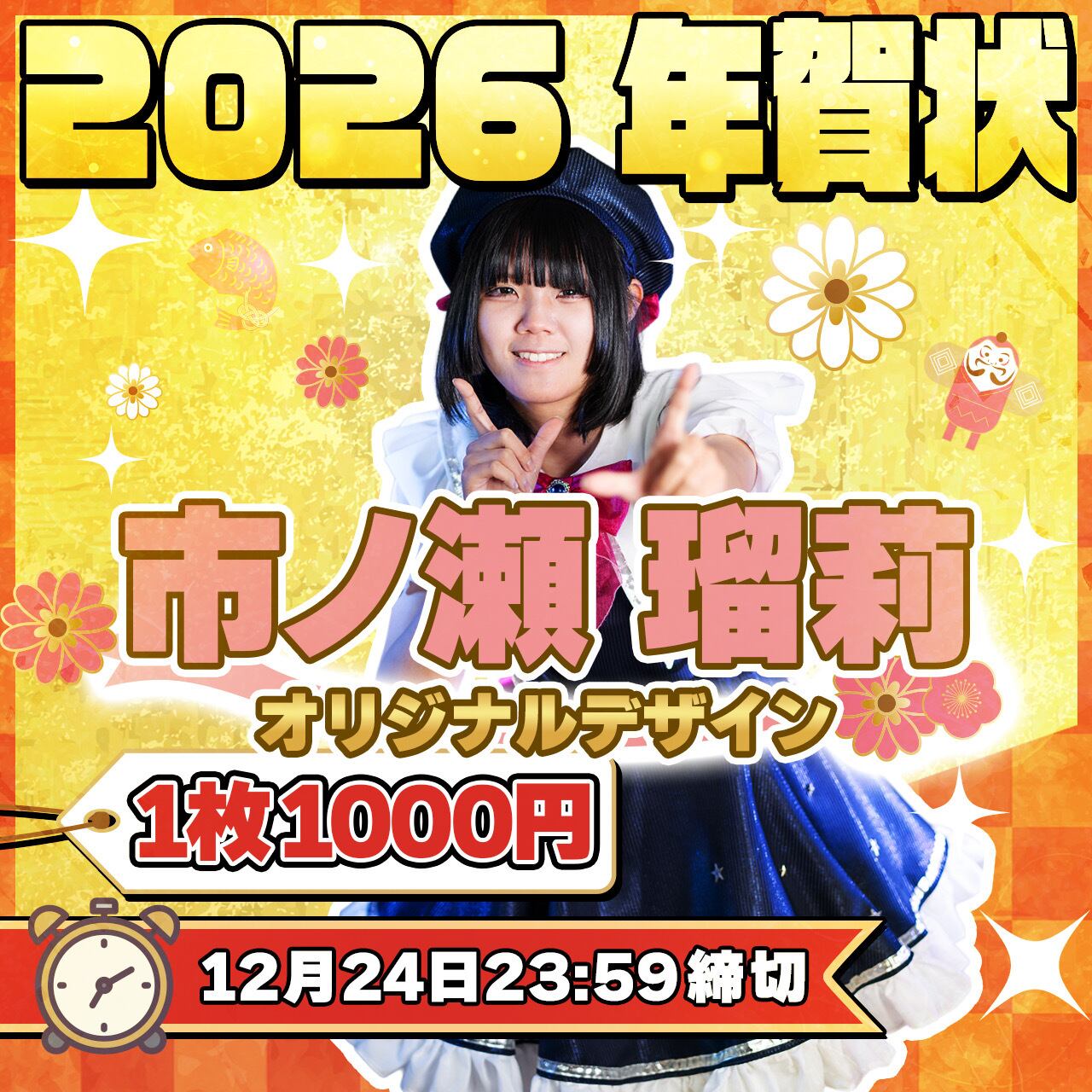 【年賀状2026】市ノ瀬瑠莉 オリジナルデザイン年賀状【送料無料】